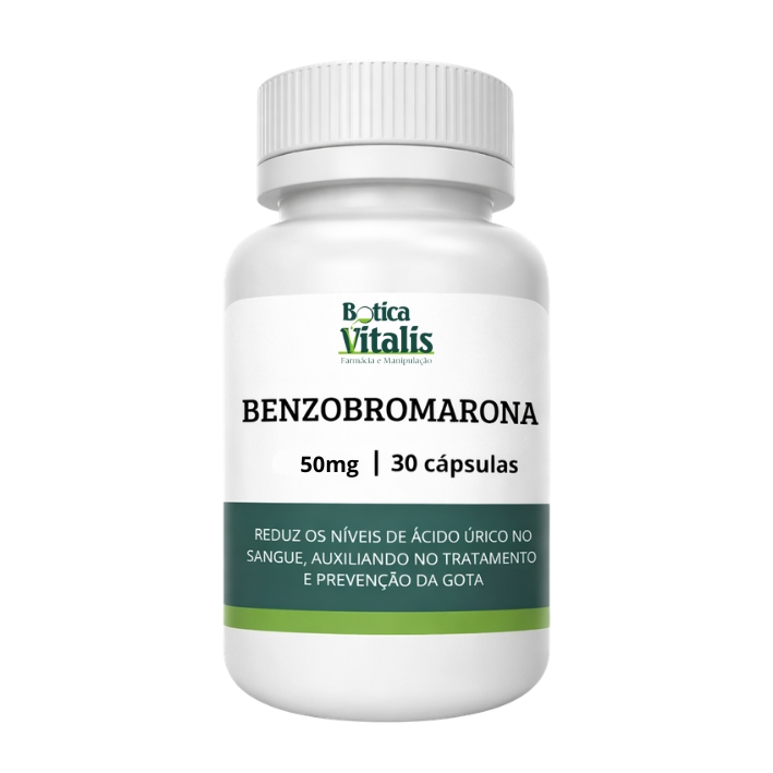 Benzobromarona é um medicamento utilizado no tratamento da hiperuricemia e da gota, atuando como uricosúrico. Ela aumenta a excreção de ácido úrico pelos rins, contribuindo para a redução dos níveis séricos de ácido úrico e prevenindo a formação de cristais de urato nas articulações e tecidos, diminuindo episódios de crises gotosas e complicações associadas ao acúmulo de ácido úrico.